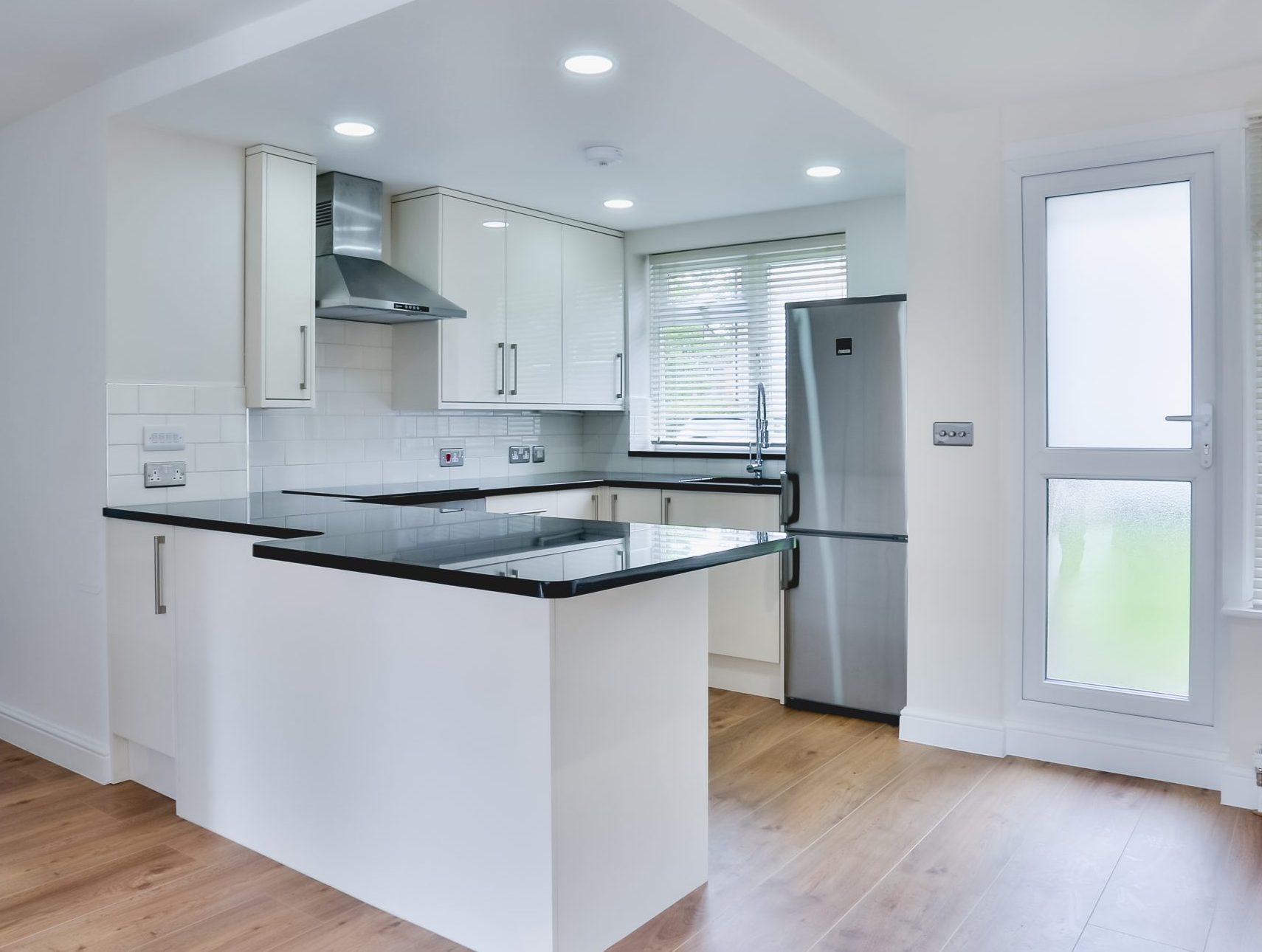 Kitchen fitting & renovation with a lowered ceiling, refurbishment, and fitting of new bathroom. Fitting of flooring throughout. Painting and decorating to walls & celling including tiling.